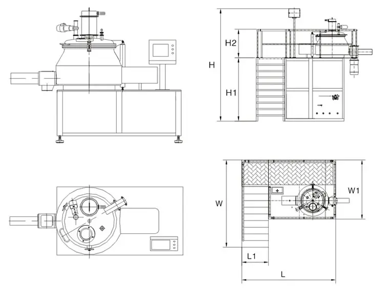 • 操作简单、安全,一次完成混合制粒工序。