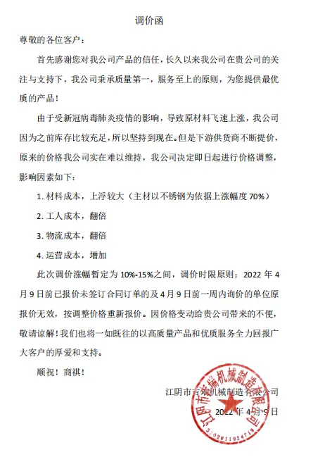 调价函